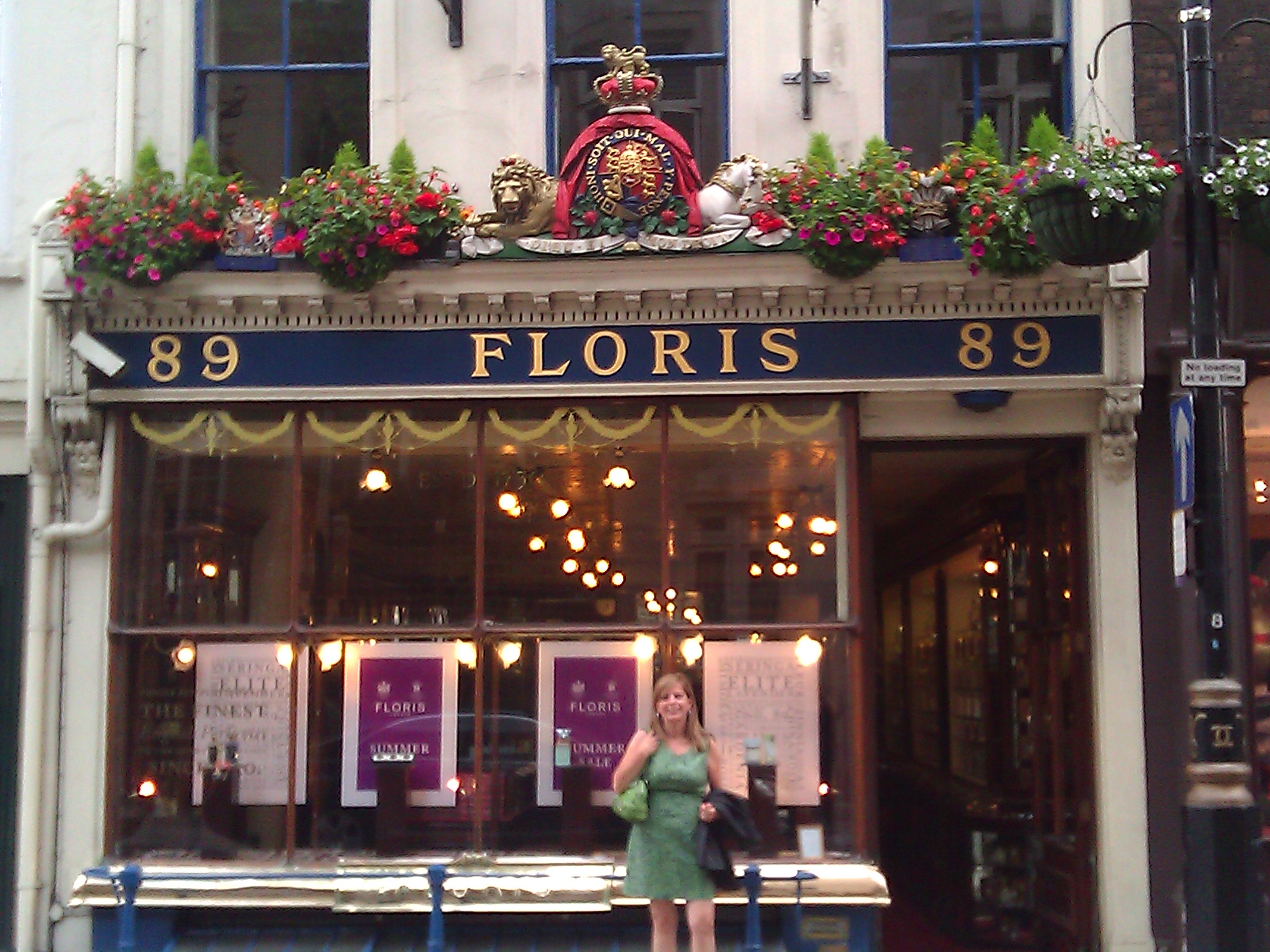 Where am I on this stop? The irresistible perfumery to Her Royal Highness—Floris of London. My heroine and her friend visit this shop in a pivotal scene in UNDRESSING MR. DARCY. This is the shop where my English hero Julian Chancellor, buys his cologne, a lime-based scent that had been originally created by Floris in the 18th century. If you are ever in the St. James area of London, Floris is worth a stop! Read my book and you’ll see why 😉