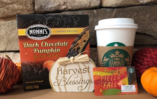 Yes, today marks Day 1 of the Pumpkins & Pages Bog Hop. I’m delighted to be giving away some scrumptious dark chocolate pumpkin biscotti, a $10 Starbucks gift card (buy a maple pecan latte, you won’t be disappointed), and a useless but totally adorable pumpkin-shaped knickknack ;)