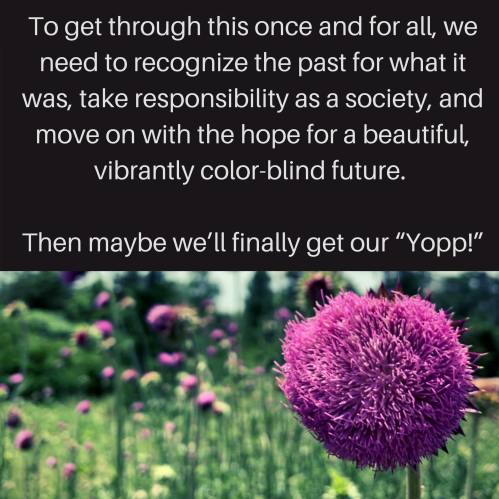 To get through this once and for all, we need to recognize the past for what it was, take responsibility as a society, and move on with the hope for a beautiful, vibrantly colorblind future.